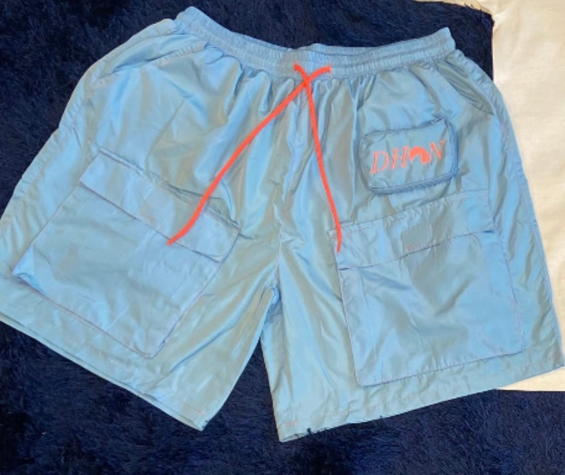 Swishy shorts with black mesh insides.